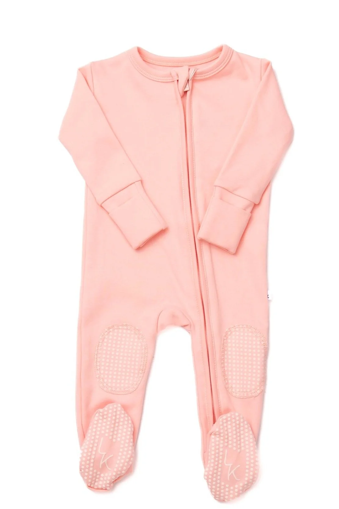 Our patent-pending onesies are made with soft, stretchy cotton blend and feature gripped knees and feet, double-layered knees, souble zipper, cuffed mutts, and a zipper cover. Designed for crawling, cuddling, and everything in between.